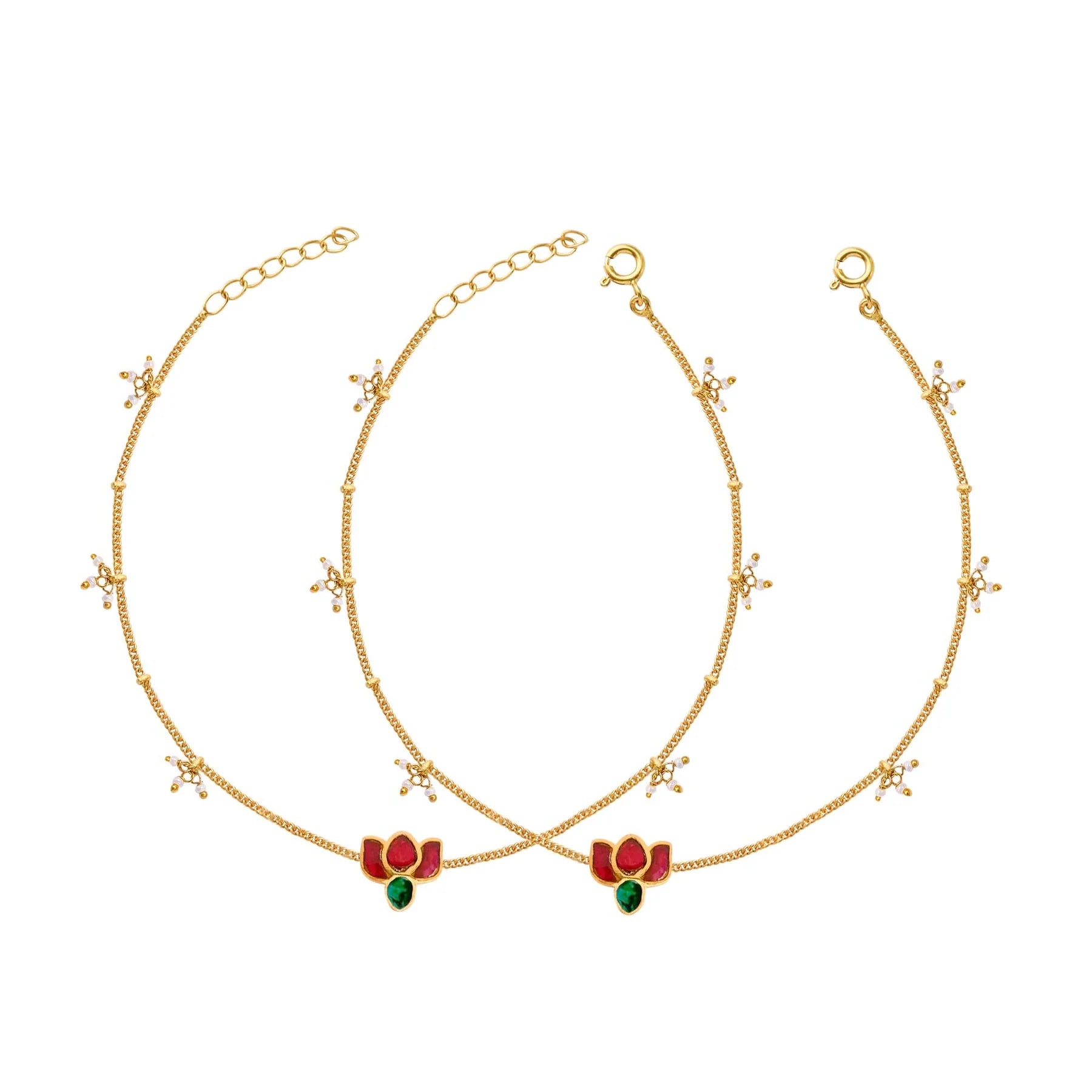 Elevate your ankle jewelry collection with this exquisite 92.5 sterling silver anklet, featuring an intricately crafted lotus motif. The lotus design symbolizes grace and spiritual elegance, making it a meaningful accessory for those who appreciate fine craftsmanship. Crafted from premium sterling silver, this anklet offers durability and a lustrous finish that complements any style. The delicate yet substantial construction ensures comfortable everyday wear while maintaining its sophisticated appearance. Perfect for layering or wearing solo, this piece bridges traditional artistry with contemporary design sensibilities.